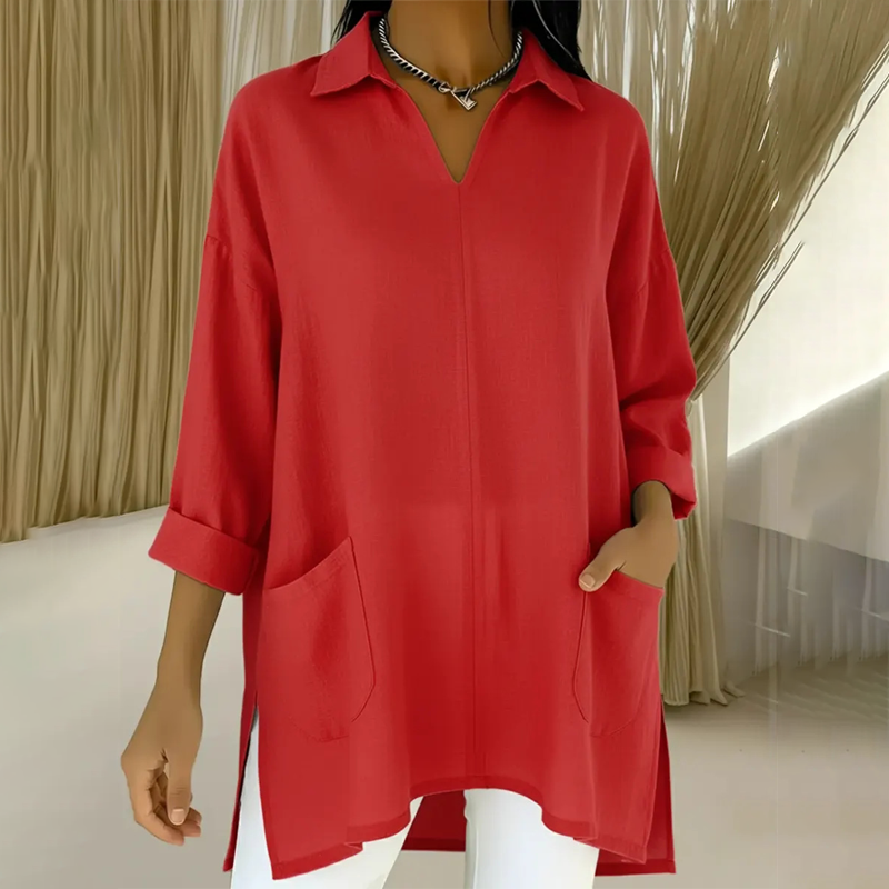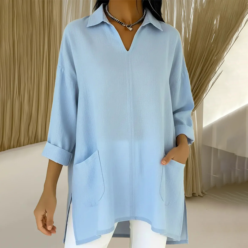 A csomag tartalma: 1 * női galléros, V-nyakú tunika felső zsebekkel
